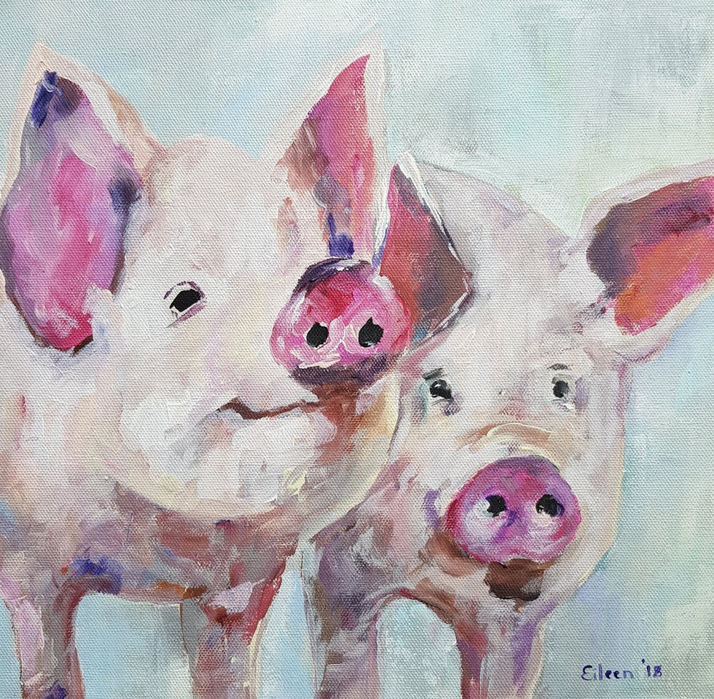 A piggy pair Posted by artbyeileen on October 29, 2018October 29, 2018 This 30 X 30 cm deep edge canvas brings my pig series to an end… For now at any rate. Share this: Share on X (Opens in new window) X Share on Facebook (Opens in new window) Facebook Like Loading... Related