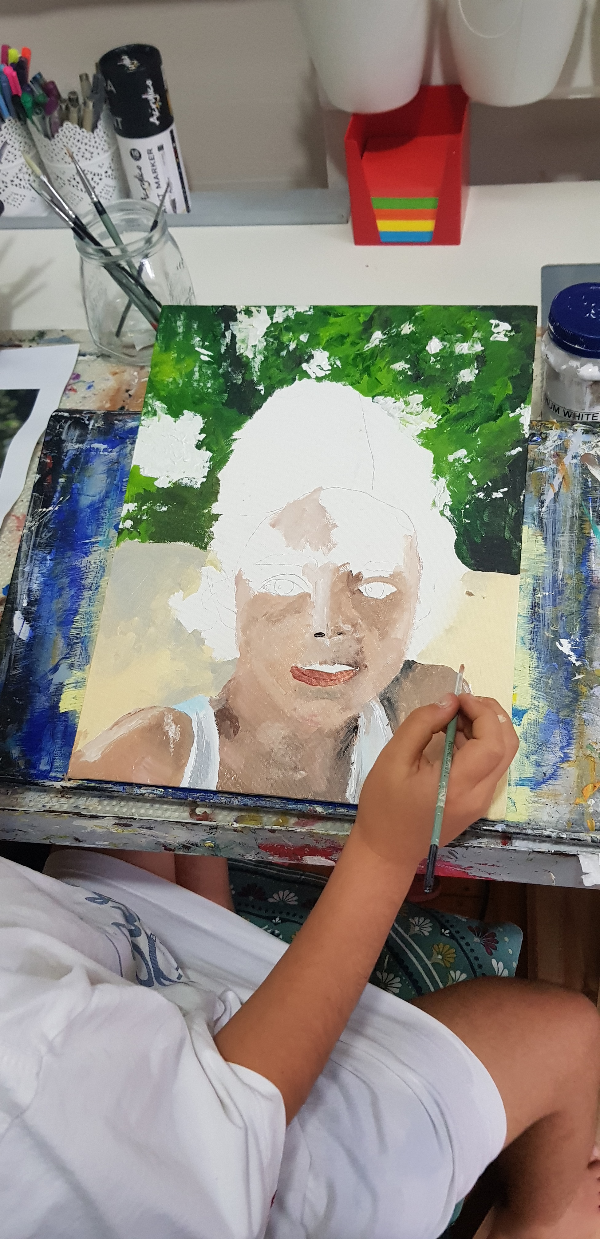I also have one young just turned 8 year old student who is obsessed with her art. She is a pleasure, and fun to teach, and very talented. Each lesson is different. Some days she’s full of energy, and other days a long day at school took the bounce out of her. I judge what she is able to deal with and adjust the lesson accordingly. Sometimes she needs help, other times not. Slowly we are working our way through a whole repertoire of subject matter. She loves painting animals, but I also want to challenge her comfort zone and encourage her to try other subject matter, within reason of course! I have drawn the line at panda bears, but lets see how long I can hold out on that one.