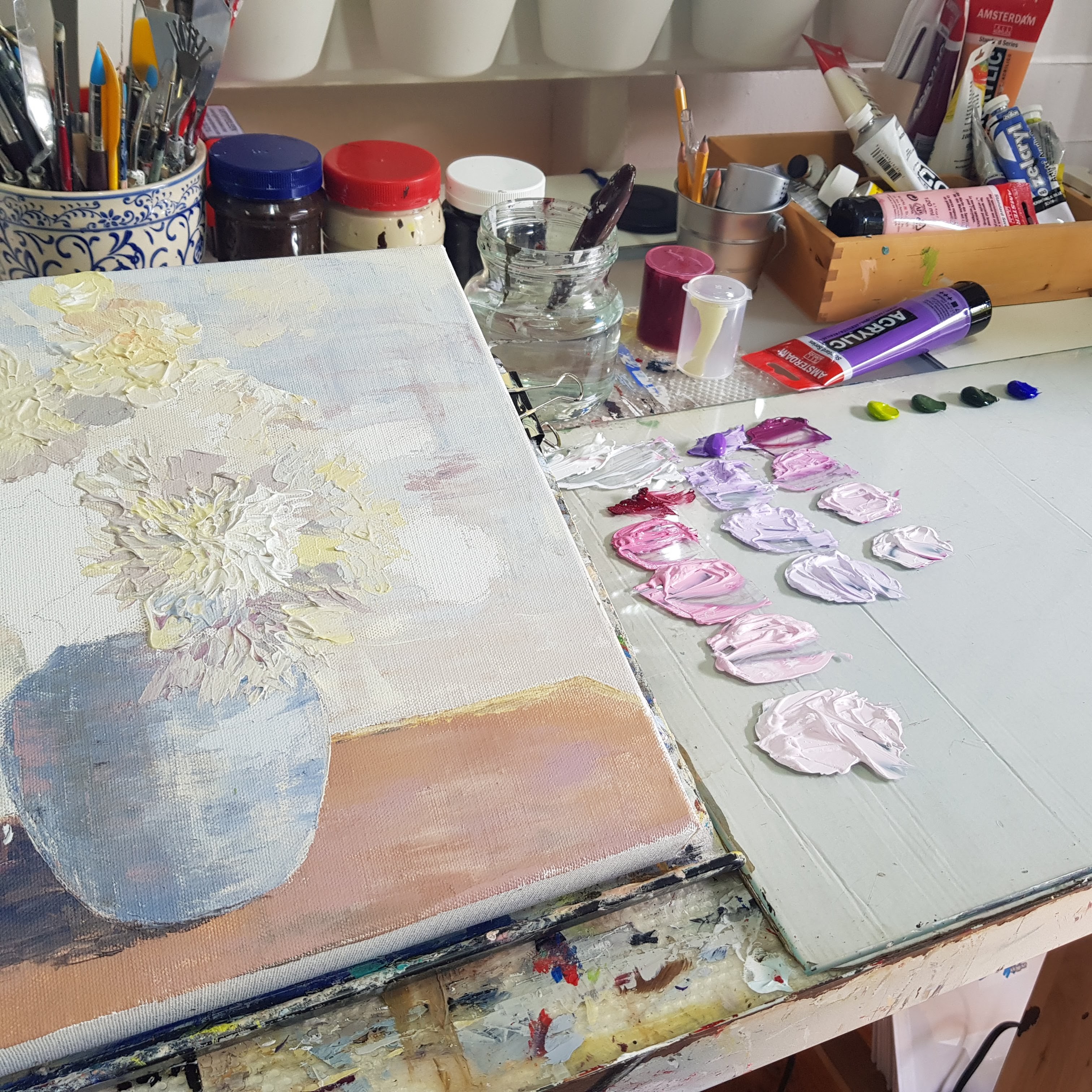 Both background and vase were painted, or should I say paint was applied with the silicone blade in the above painting.