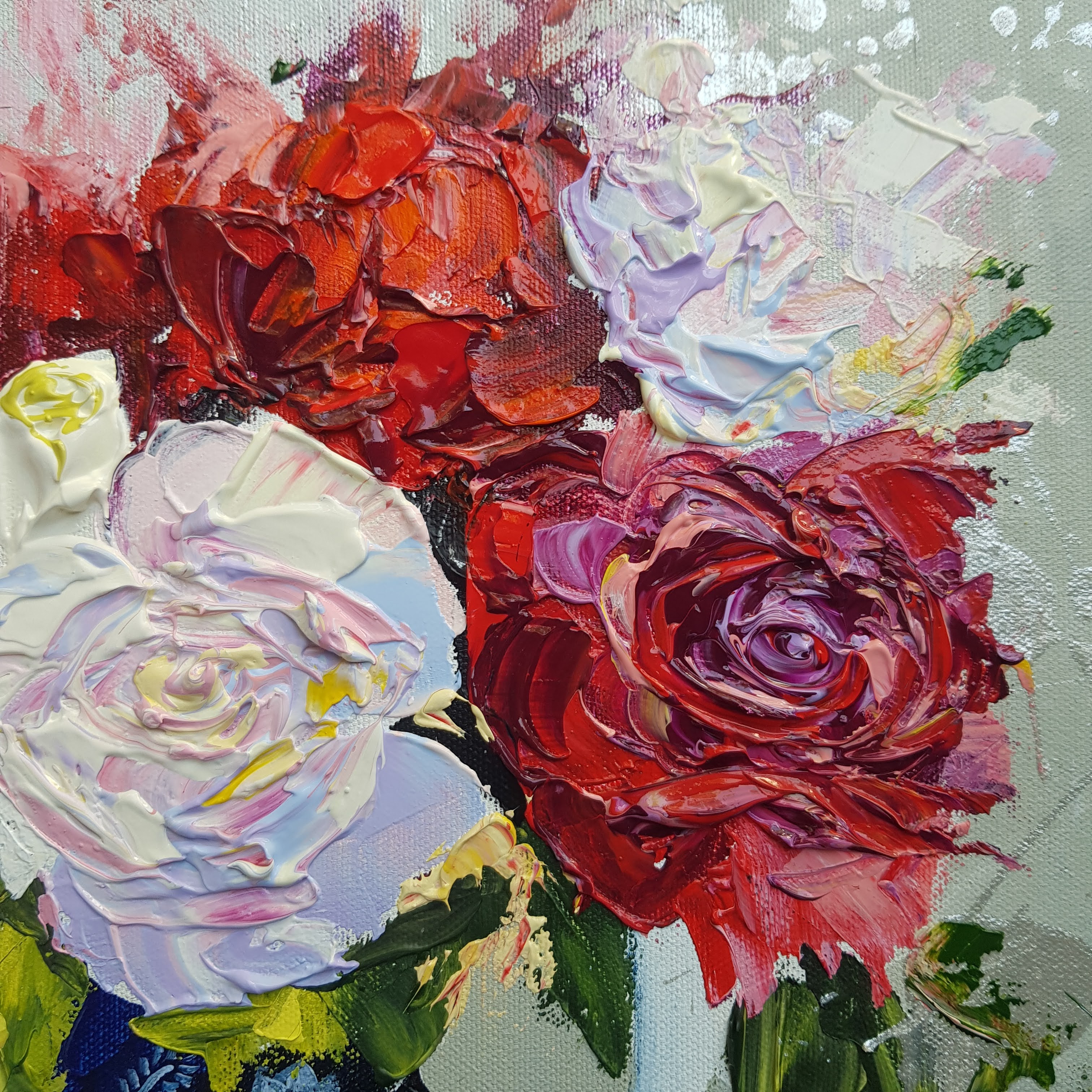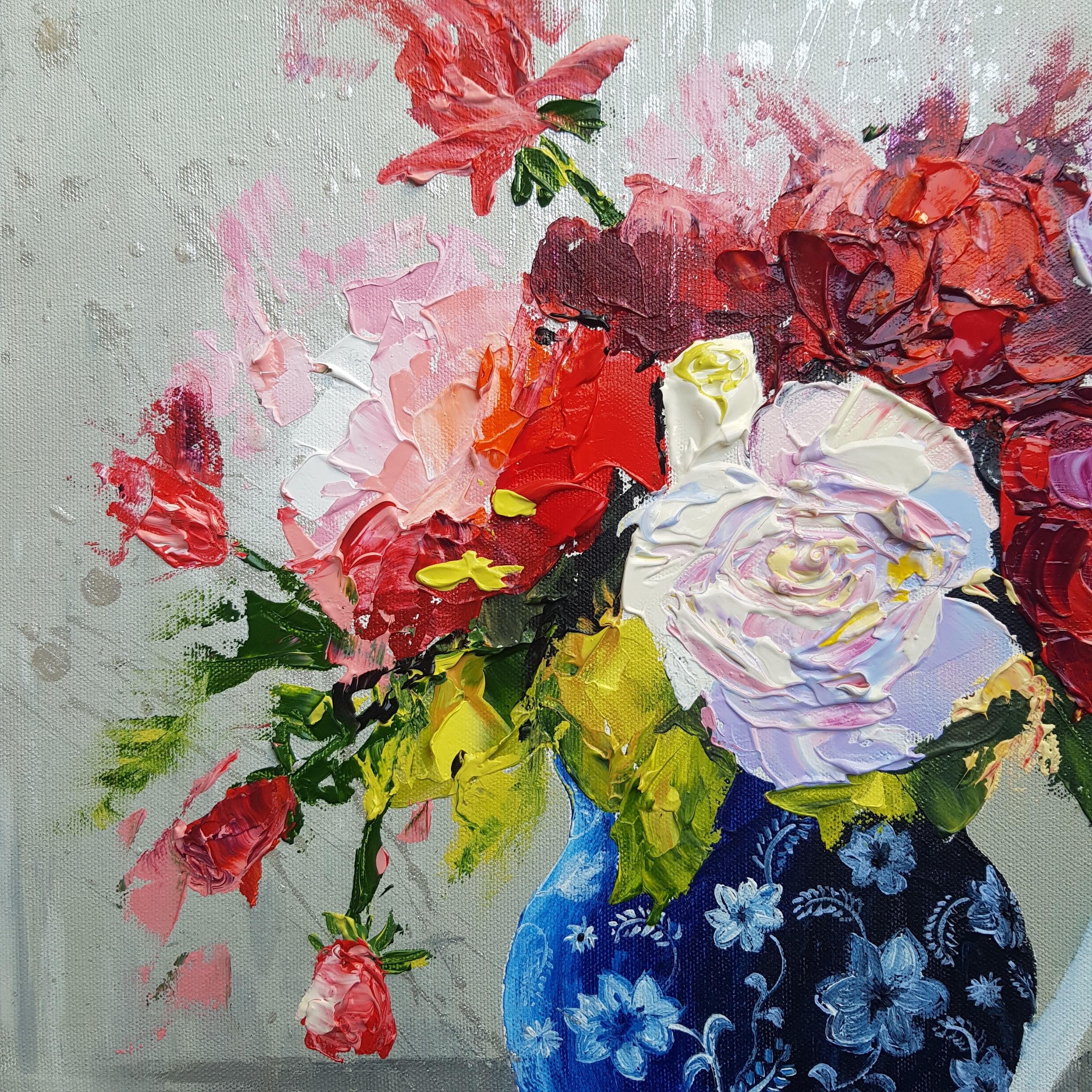 An explosion of roses Posted by artbyeileen on May 30, 2021 The strong blue in the jug was screaming to be balanced with some strong colours, and the result is an explosion of colour and roses… An explosion of roses, Acrylic on canvas – 40 cm X 40 cm Share this: Click to share on X (Opens in new window) X Click to share on Facebook (Opens in new window) Facebook Like Loading... Related