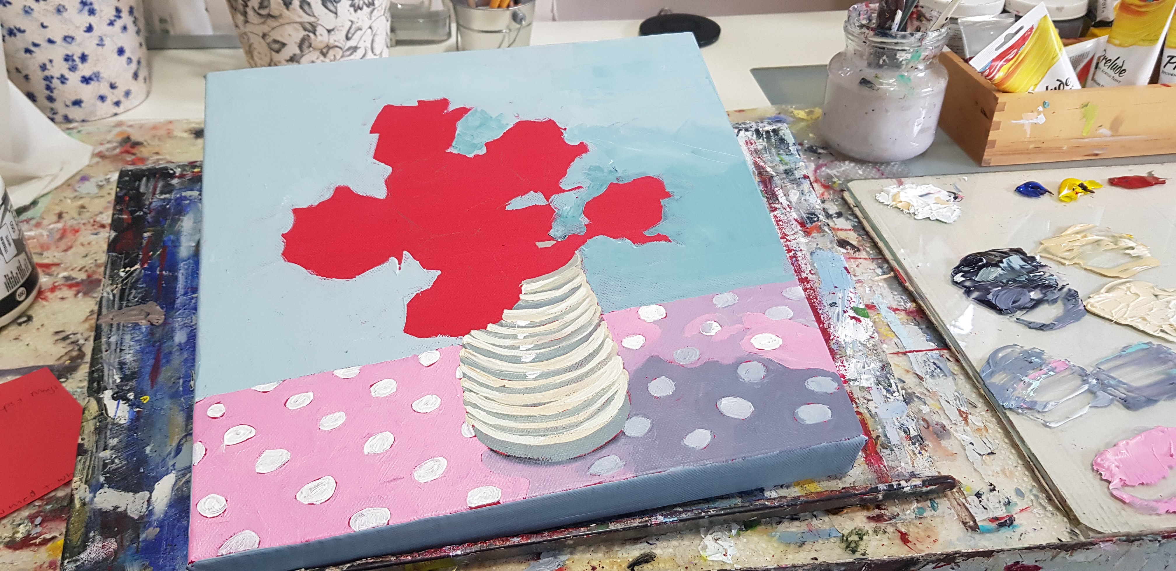 Ice cream parlour roses Posted by artbyeileen on July 10, 2021 This little 30 cm X 30 cm square reminded me of a vintage ice-cream parlour with its polka dots and pastel colours. Ice-cream parlour roses, Acrylic on canvas – 30 cm X 30 cm Share this: Click to share on X (Opens in new window) X Click to share on Facebook (Opens in new window) Facebook Like Loading... Related