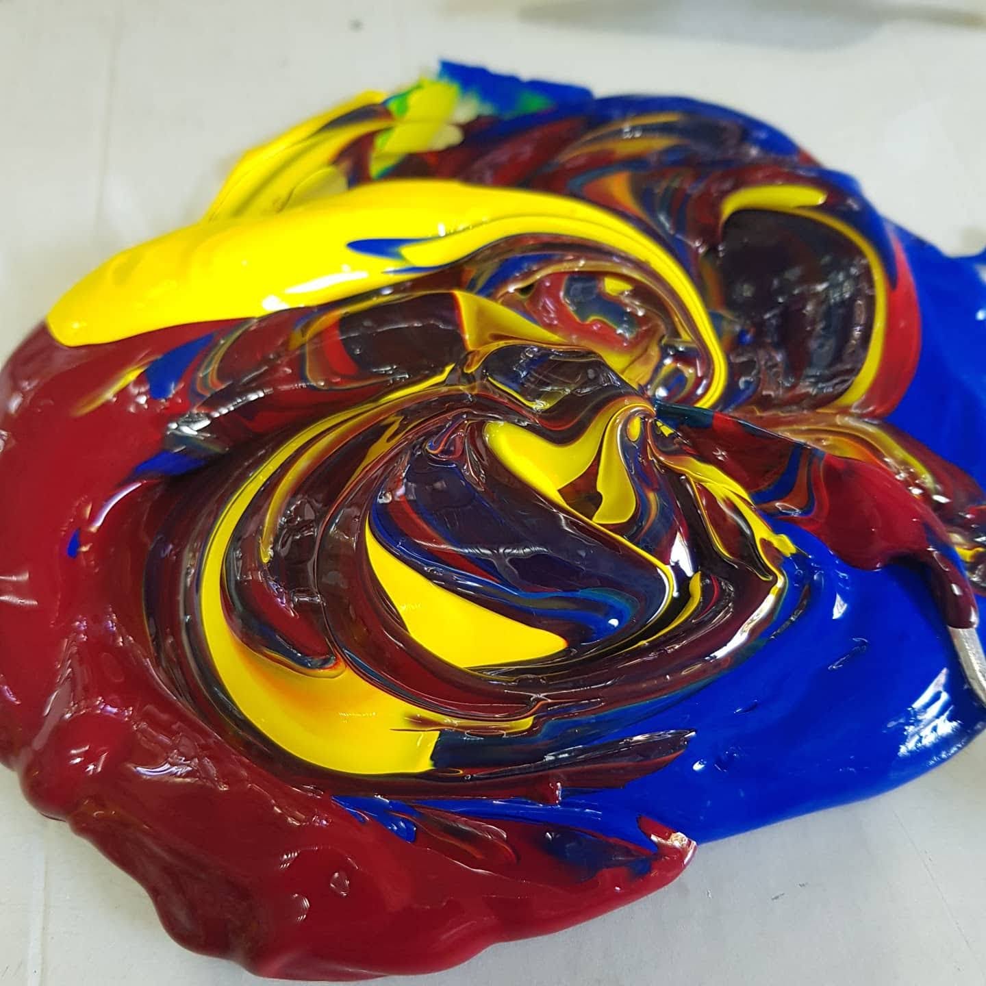 Another custom black I like to use is a mix from Pthalo blue, Alizarin crimson and Cadmium yellow Medium (though I have used Cadmium yellow and cadmium lemon yellow in this mix). All these yellow options mixed with Pthalo blue and Alizarin crimson give you an incredible variety of greens!