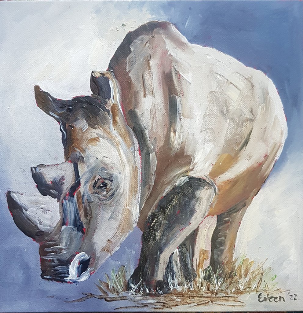 In honour of the tank puppies Posted by artbyeileen on May 1, 2022 This week was spent painting rhinos, my favourite of all the big beasts! Mom and baby, acrylic on canvas, 30 cm X 40 cm Rhino, acrylic on canvas, 25 cm X 25 cm Rhino, acrylic on canvas, 25 cm X 25 cm Share this: Click to share on X (Opens in new window) X Click to share on Facebook (Opens in new window) Facebook Like Loading... Related