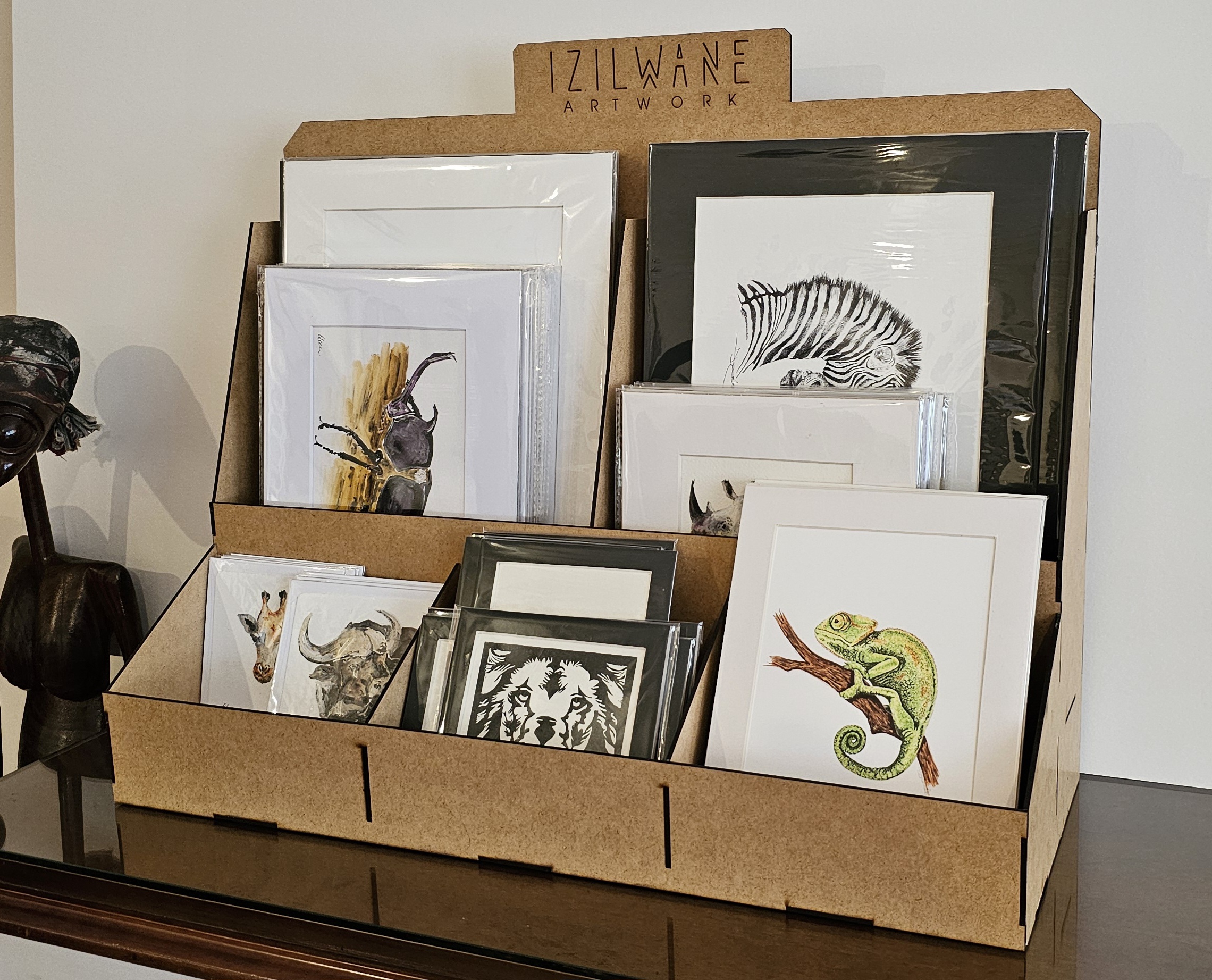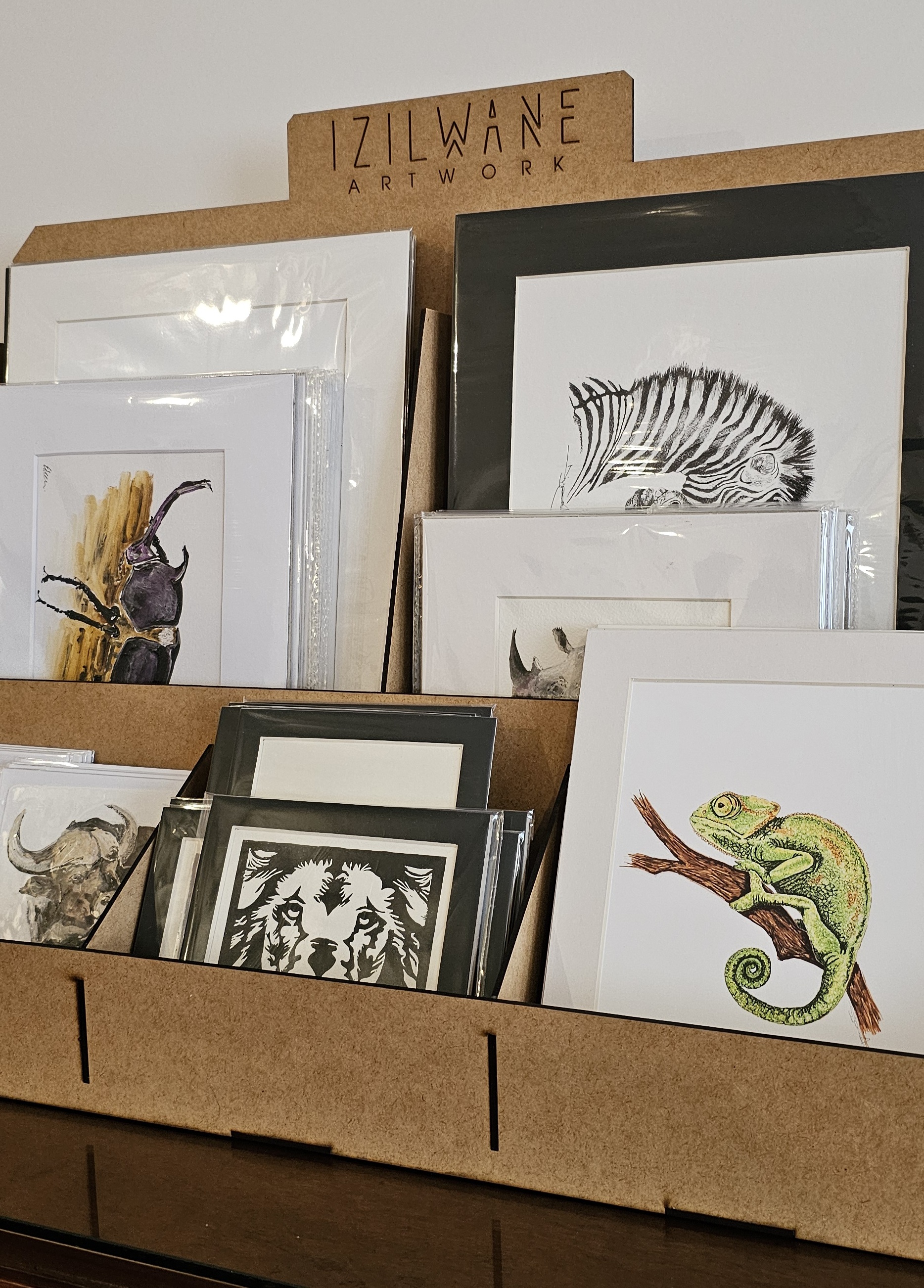The idea behind the Izilwane (which means animals in Zulu) cooperative is to provide affordable, easy to pack, lightweight original art, or limited edition prints that will take up no space in your suitcase and are pre-mounted and ready to frame.