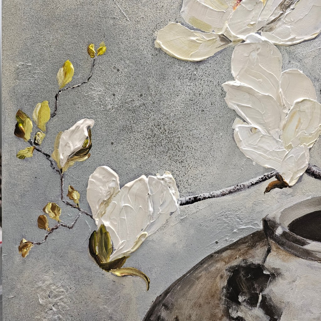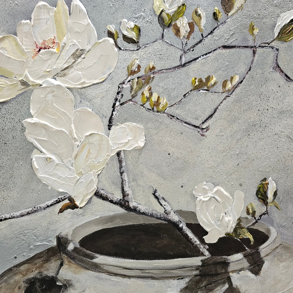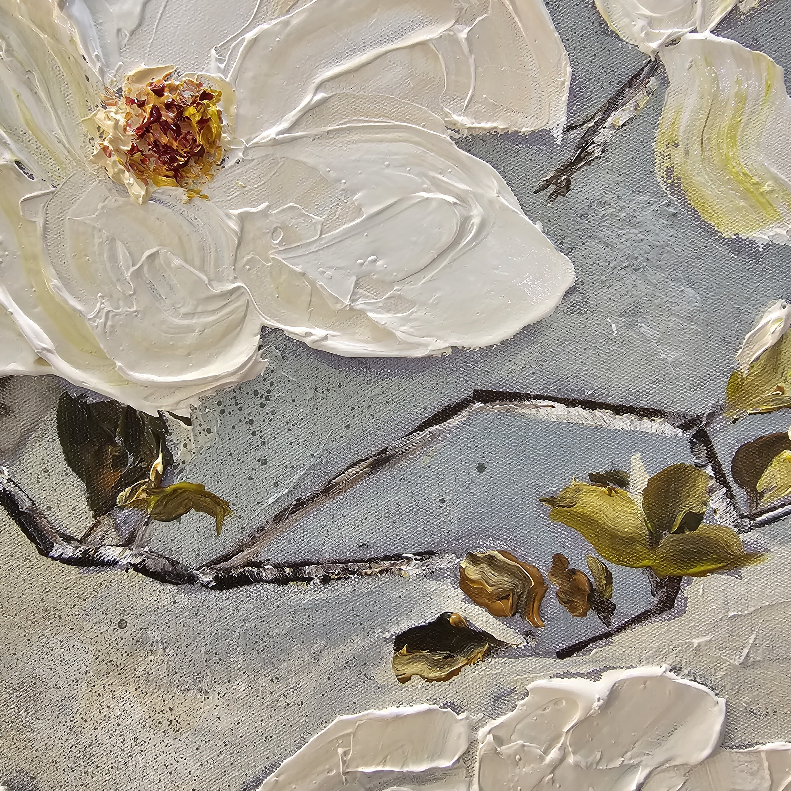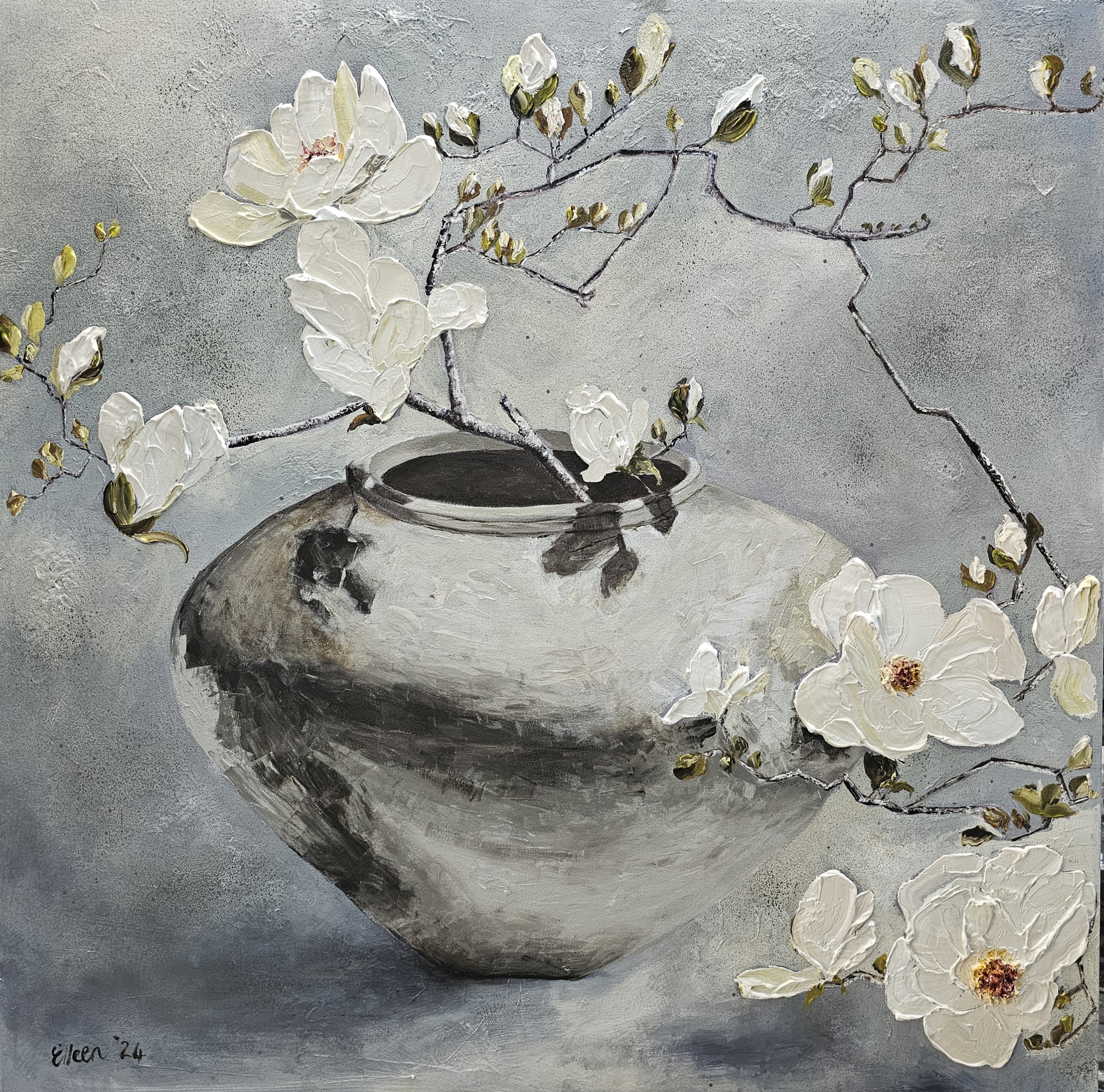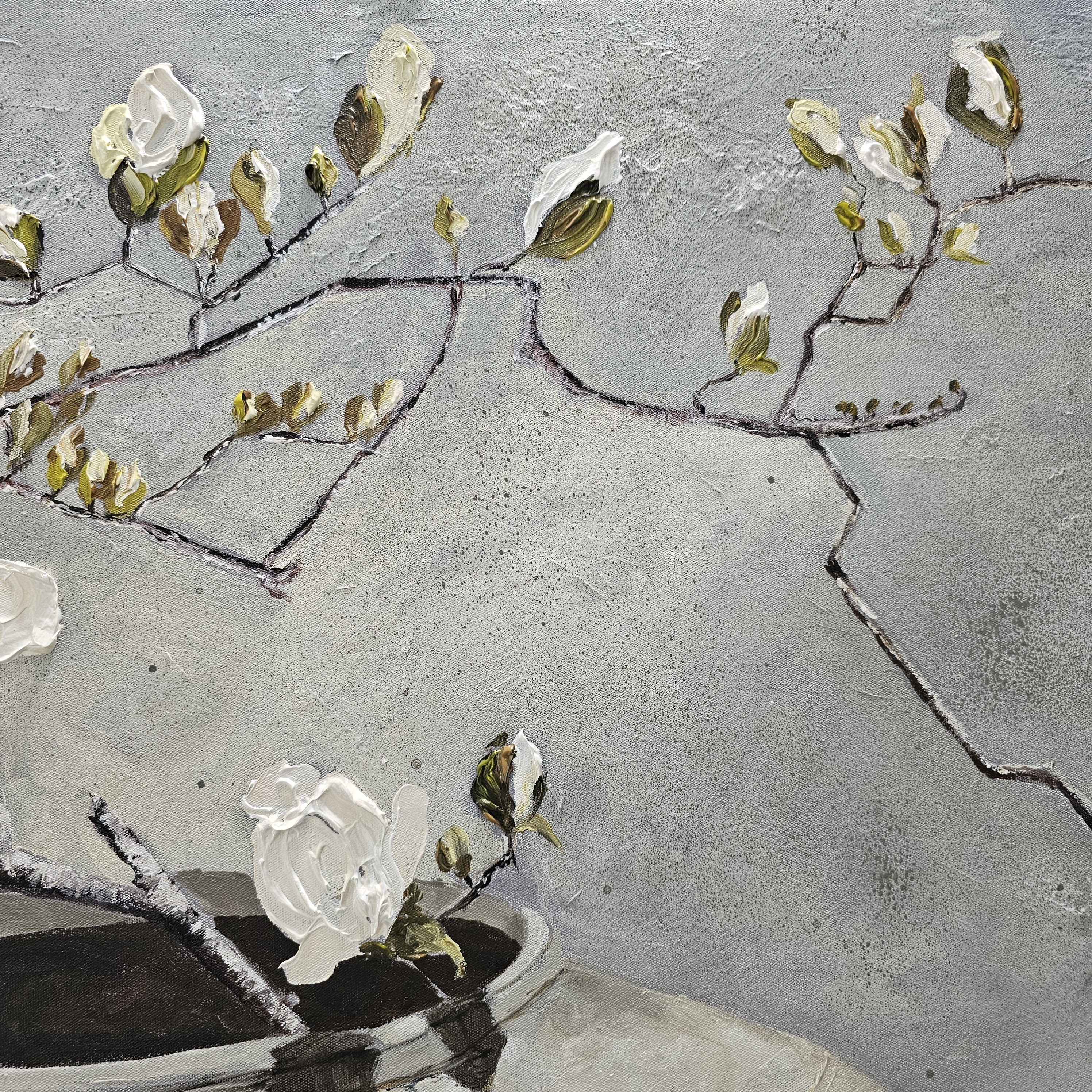Magnolia branch Posted by artbyeileen on July 28, 2024 I love painting magnolias. I haven’t painted any in a while now so I figured it was time. This is a large painting 100 cm X 100 cm of a branch filled with sculptural magnolia flowers and buds at various stages of opening. Share this: Click to share on X (Opens in new window) X Click to share on Facebook (Opens in new window) Facebook Like Loading... Related