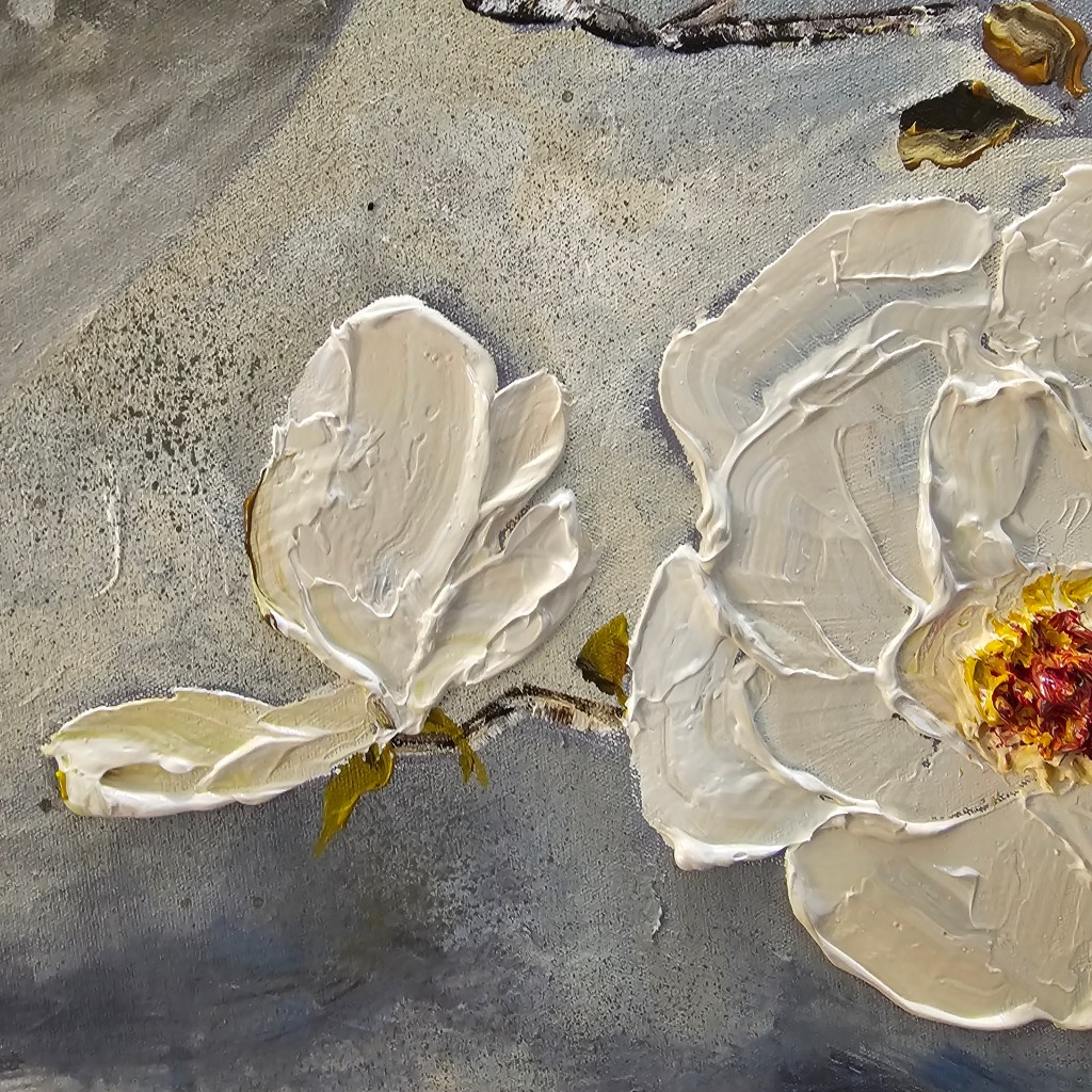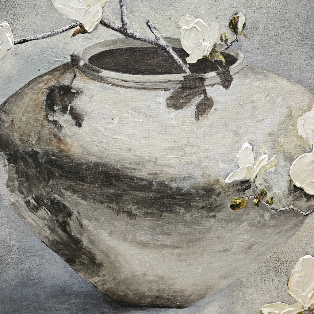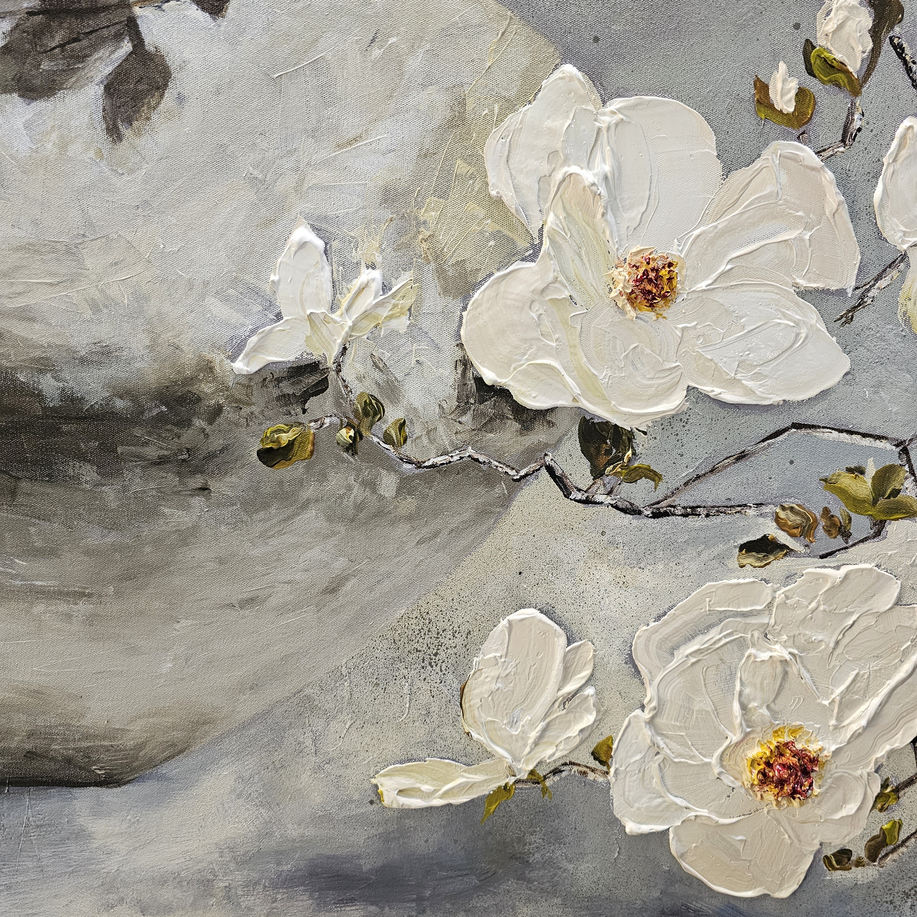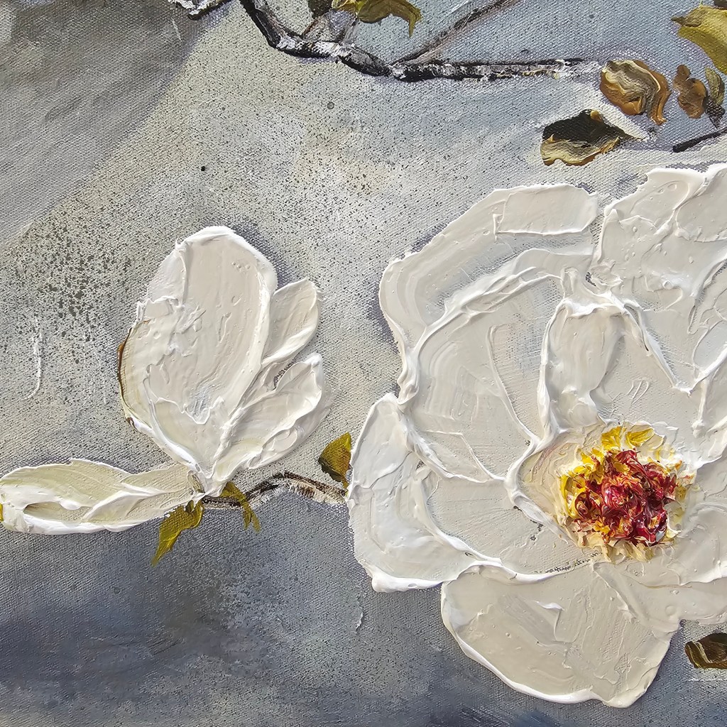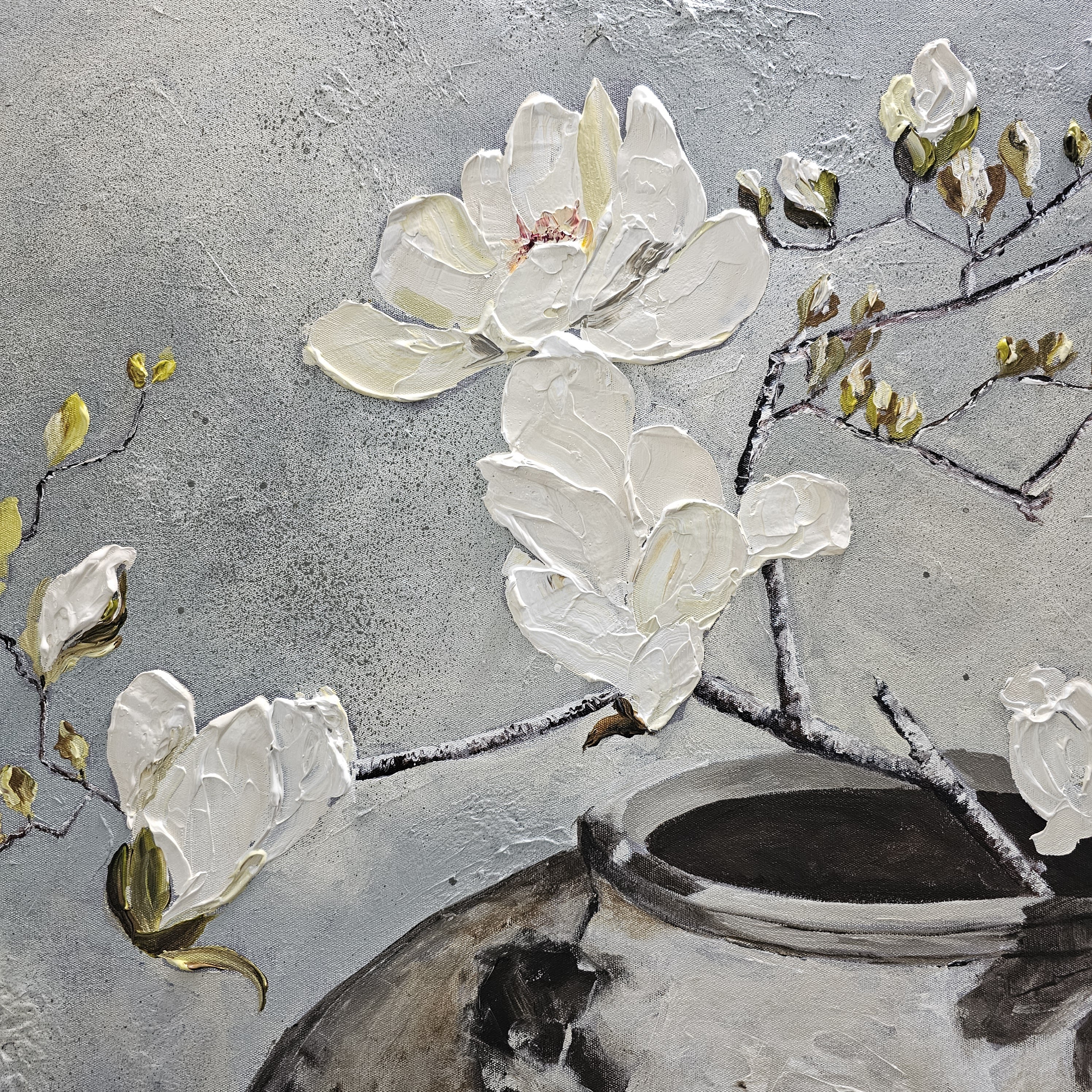 Magnolia branch Posted by artbyeileen on July 28, 2024 I love painting magnolias. I haven’t painted any in a while now so I figured it was time. This is a large painting 100 cm X 100 cm of a branch filled with sculptural magnolia flowers and buds at various stages of opening. Share this: Click to share on X (Opens in new window) X Click to share on Facebook (Opens in new window) Facebook Like Loading... Related